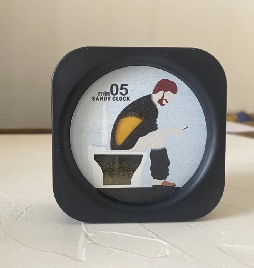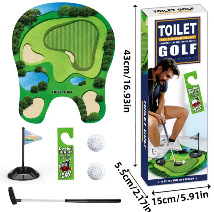 Elle est composé , d'un porte téléphone, d'un mini golf pour WC, d'un minuteur WC, d'un jeux de lancer d'anneaux, de dés de décisions et d'un grattoire à dos.