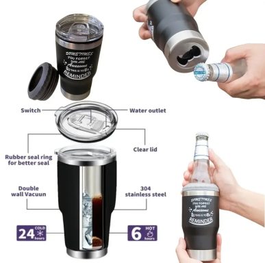 Coffret cadeau pour homme 5 pièces, comprenant une gourde isotherme avec couvercle, un portefeuille, un bracelet de sport d'extérieur, un porte-clés et une carte de vœux